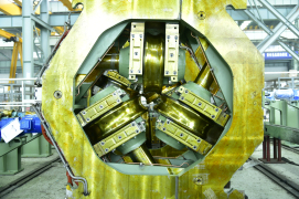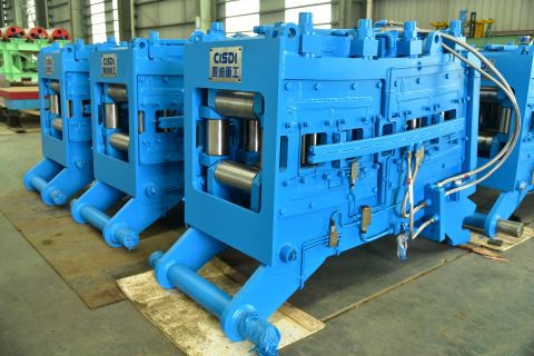 中冶賽迪牌坊式UMCD萬能軋機由一對水平輥和一對立輥組成封閉孔型,采用了高剛度牌坊式結構和先進的TCS控制系統,集成自動輥縫控制(AGC)與液壓位置控制(HPC),精確軋制H型鋼、鋼軌、礦用型鋼、鋼板樁等型鋼,可實現智慧化高精度萬能軋機應用,提高自動化水平,提升產品質量與生產效率。