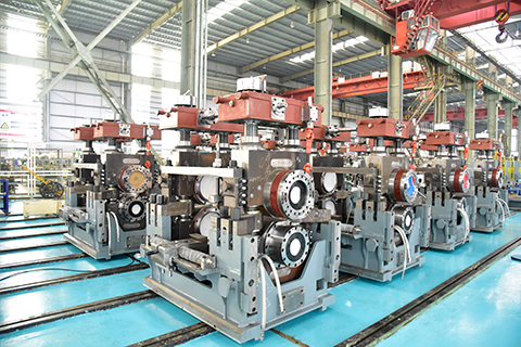 中冶賽迪定減徑機包括三輥系列和四輥系列,作為鋼管生產過程中最后一道變形工藝,與多種軋管機配套以擴大產品規格、提高產品精度、減少軋管機軋制規格、提高軋管機的生產效率。尤其是大張力減徑機用于使用連鑄坯熱軋生產小口徑管,能耗低,切損少,是一種高效綠色的首選機型。