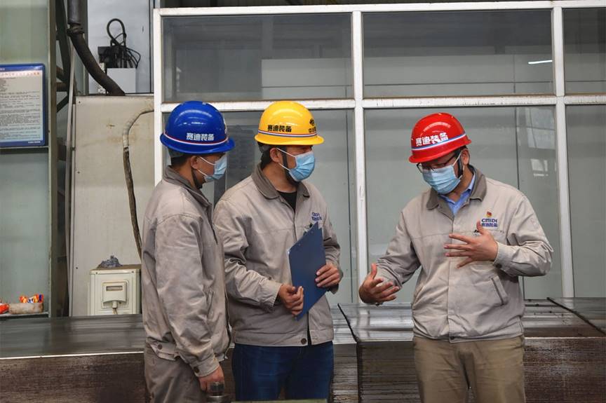 六安、盛隆連鑄項目黨員突擊隊由第三黨支部副書記、總裝車間主任廖靖擔任隊長,組員涵蓋設計、工藝、鉚焊、機加、裝配等專業。他們在做好本質工作的前提下,積極引導本部門員工響應公司號召,突顯攻堅克難精神。面對疫情所帶來的原材料回貨延期、多項目并行導致的工期緊張等方面的困難,突擊隊提前謀劃、統籌安排,有條不紊完成了前期的設計和工藝編排;生產攻堅期間恰逢端午節,團隊放棄休假奮戰在各條戰線上,積極推進督促、充分溝通協調、加緊生產制造,各項工作有條不紊推進。