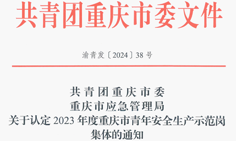 4月30日,共青團重慶市委、重慶市應急管理局聯(lián)合下發(fā)《關于認定2023年度重慶市青年安全生產(chǎn)示范崗集體的通知》,中冶賽迪裝備有限公司鉗工六組被認定為2023年度重慶市青年安全生產(chǎn)示范崗。
